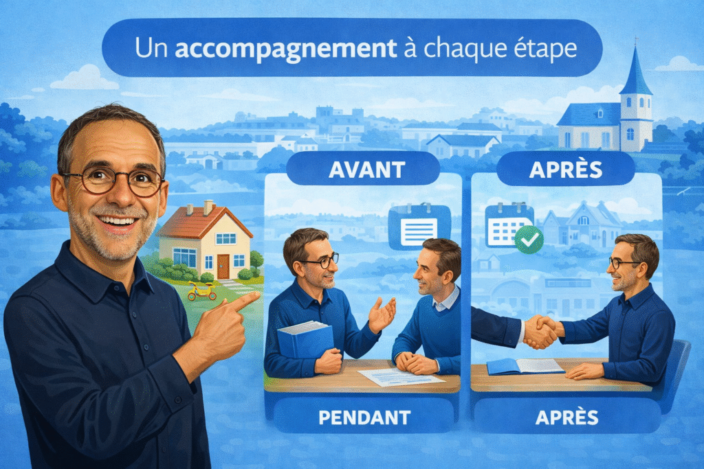 Vendre un bien immobilier peut être source d’interrogations et parfois de stress. Être accompagné permet de mieux comprendre les étapes, d’anticiper les points sensibles et d’avancer avec plus de sérénité. Un accompagnement sérieux apporte à la fois de la méthode, de la clarté et une présence régulière tout au long de la vente.